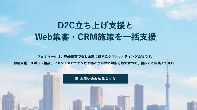 | D2C立ち上げ支援、Web集客など、各専門性ごとのスペシャリストが一気通貫で解決策を提案。ワンストップ・フルスタックが強みのWEBコンサルティング事業を展開 |